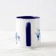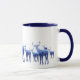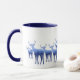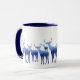 Esta caneca é mostrada no exterior branco com veado/alce azul bonito escutado impresso na borda inferior da caneca da direita para a esquerda. O interior e a alça são marinhos azuis. Personalize esta caneca ou comprar conforme projetado. Imagem de estoque cortesia de www.freepik.com
