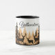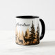 Essa caneca de café cerâmica é mostrada com um impressão de arte de cervo na floresta com texto de Yellowstone. Interior preto e alça. Personalize este item ou comprar como está.