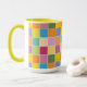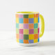 Playful Springtime Checkers caneca de café Colorida caneca de café marcada com vários tons de amarelinho, laranja, verde, lavanda e azul. Faça a correspondência com a coleção de cores de primavera. Por celeste@khoncepts.com