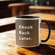 Algumas manhãs, você simplesmente não está aberto para negócios — e esta caneca deixa isso alto e claro. A caneca de café "Check Back Later" é sua resposta fora do escritório alimentada com cafeína em forma cerâmica. Apresentando um texto branco em negrito em um embrulho rico em tons de café, ele é perfeito para introvertidos, pessoas não matinais, ou qualquer pessoa que precise de um pouco de paz antes do zumbido. Quer você esteja esquivando de conversas pequenas ou apenas se abrigando mentalmente, esta caneca tem suas costas.