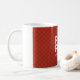 Agrida com o logotipo branco do texto da analítica vermelha do comprimido no fundo vermelho do teste padrão do comprimido.