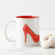 Todo o dia pode ser um dia vermelho dos saltos altos, com esta parte sassy da indicação. A cor interna complementar ajusta realmente esta caneca separada. A melhor coisa sobre ela? Guardara o café.