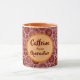 Caneca Vermelho e laranja do vírus da cafeína e quarenten