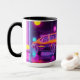 Cruze pelo passado com esta caneca de carro! Com um clássico carro muscular americano banhado em luzes de neon, esta caneca é perfeita para qualquer um que ama carros vintage e nostalgia dos anos 80. Esta caneca vai transportá-lo de volta para uma hora mais simples, quer você esteja bebendo seu café da manhã ou chá da noite."
