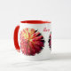 Fechar uma foto de uma flor vermelha de dália absolutamente espantosa. Você pode personalizar esta xícara usando a ferramenta design - excelente para o trabalho se você tem o hábito de colocar sua caneca no chão e deixá-la - todos saberão a quem ela pertence. Disponível em tamanhos e estilos diferentes. ideia de presente de excelente!