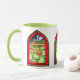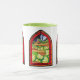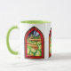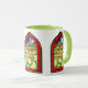 Uma caneca com o deus asteca Quetzalcoatl no estilo de uma janela de vidro medieval manchado.