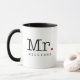 Uma caneca de café com sobrenome personalizada para o texto do estilo de máquina de escrever do Sr. Features a preto com sotaque cardíaco vermelho. Visite a nossa loja para a mama de café da Sra.. - que fazem um presente de casamento único!
