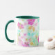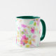 This floral mug features a vintage pattern of flowers. I processed this image with a watercolor painterly style for an artsy flair. The handle and inside of the cup are green to complement the artwork.