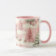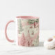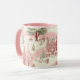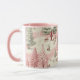 Um belo padrão de natais vintages de aquarela é tons de rosa e verde. Tendy rosa caneca festiva de Natal.