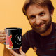 Legal padrão de chama Ilustração de guitarra elétrica em vermelho, laranja, amarelo sobre fundo preto com duas vistas do violão. Monograma preto e laranja facilmente personalizado cria o presente perfeito para um guitarrista, músico e amante da música. Qualquer guitarrista lhe dirá que você nunca pode ter muitas guitarras. Este legal instrumento musical moderno design celebra a energia musical deste maravilhoso instrumento musical. Arte original da artista Catherine Sweetman