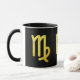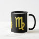Símbolo de Virgem em ouro sobre fundo preto.
