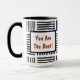Dê isso ao Homem em sua vida - Você é o melhor inspirado striped Personalize Mug. O padrão de fundo tem Artsy Black Stripes. Ele vai fazer uma maravilhosa peça de conversa para um namorado ou namorada, ou para uma pessoa especial em sua vida para o presente ou aniversário do aquecimento da casa. Comprar um ou dois copos para aquela pessoa especial na sua vida. A caneca pode ser personalizada com suas informações. Criador Denise Bennerson