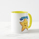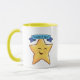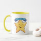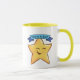 Adorável estrela amarela de desenho animado com um sorriso feliz no rosto. Uma faixa azul acima de dizer que você é uma estrela.