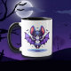 Uma caneca de café bonita para o Halloween ou Dia de os namorados. Citação: "Você me faz apodrecer." Um bonito desenho animado kawaii morcego em roxo e preto.