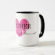 Você será minha dama de honra com coração vintage. Tamanho grande. Design de símbolo de amor rosa-néon, rupto e bonito, com tipografia elegante na escrita. Cor de fundo personalizada e nome personalizado ou monograma. Personalizar pedidos de casamento para noivas, madrinha de casamento, florista. Matriz de honra, padrinhos de casamento, etc. Faça sua própria caneca de café engraçada para primo, irmã ou irmã de direito. Acessórios de na moda para festa de casamento, chá de panela, noivado, aniversário, solteira, fim de semana de meninas, etc. Ícone romântico com texto de classe para casamento. Uma caneca de café muito grande. Também disponível como pequeno ou grande para caneca de viagem.