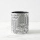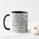 Design preto e branco Disponível em Dimensões de 11 onças ou 15 onças: 11 onças: 3,8" h x 3,2" de diâmetro 15 onças:4,5" de altura x 3,4" de diâmetro Micro-ondas e máquinas de lavar loiça Fortes, construção cerâmica Cumpre ou excede os requisitos do FDA para segurança de comidas e bebidas Impressos a pedido em Reno, NV
