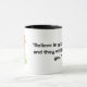 Esta caneca branca apresenta uma ilustração lúdica de um OVNI de desenho animado pairando sobre um campo de linhas verdes brilhantes, acompanhado pela citação lúdica "Acredite e eles virão." Inspirada pelo fascínio pelo desconhecido e lúdico espírito do imaginário infantil, a design combina a trabalho de arte branca com um toque de humor. A paleta de cores pastel e a tipografia brincalhona criam um design reluzente e engajador que desperta a curiosidade e estimula uma sensação de maravilha.