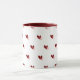 11oz white mug featuring a bold pattern of dark red hearts with filled centers. Perfect for adding a touch of romance to your coffee moments or gifting someone special.