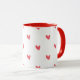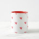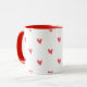 11oz white mug featuring a subtle wavy red hearts pattern, with a matching red handle and interior. Perfect for cozy coffee moments or as a romantic gift.