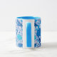 Caneca de café em William Morris, Art Nouveau, padrão têxtil - elegante, estilizado, crisântemo, girassóis e folhas, em tons de turquesa, cobalto e azul marinho, sobre fundo branco