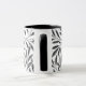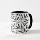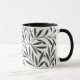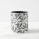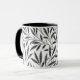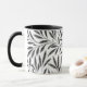 Caneca de café em um padrão têxtil William Morris Art Nouveau de ramos estilizados de salgueiro e folhas em tons de cinza/cinza de prata, acentuados de preto, sobre fundo branco