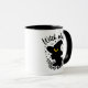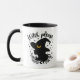 A beautiful witch in black with the moon in color and all other elements in black and white.