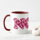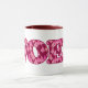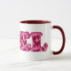 Mug in NOEL word art padronizado com árvores de Natal - burgundy profunda e tons de rosa, acentuados com branco