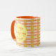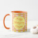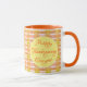 Caneca de café personalizada para ação de graças em xadrez laranja, amarela e branca. O texto pode ser personalizado para qualquer mensagem ou o texto pode ser removível. Ideia moderna e na moda de presente.