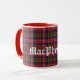 Excelente que olha a caneca escocesa do clã feita no teste padrão colorido tradicional da xadrez de MacPherson. O texto do estilo do Velho Mundo no branco lê MacPherson e é customizável ler o que você quer.
