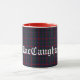 Caneca de xadrez escocesa com aparência de excelente feita com o padrão colorido de xadrez MacCaughan. O texto no estilo do mundo antigo em branco lê MacCaughan e é personalizável para ler o que você quer.