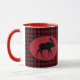A pintura do Peck de Linda Baysinger de uma silhueta preta de um alce do touro no oval vermelho, com verificações do vermelho e do preto. Peck de Linda Baysinger do © da imagem todos os direitos reservados