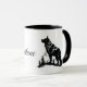 Esta caneca de café cerâmica é mostrada com um impressão de arte de um lobo com texto Yellowstone. Interior preto e alça. Personalize este item ou comprar como está. Imagem do stock