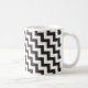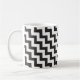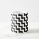 Um na moda Ringer Mug com um padrão diagonal de fevron em ziguezags preto e branco.