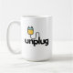 Design divertida com esta caneca de café grande de 15 onças com a citação tipográfica minimalista, "Desplugue-se". Projetado para uma capacidade de 15 onças, mas também vem em uma opção de 11 onças. Esta caneca é segura para uso tanto no micro-ondas como na máquina de lavar louça. presente de excelente para colegas de trabalho.
