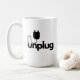 Design divertida com esta caneca de café grande de 15 onças com a citação tipográfica minimalista, "Desplugue-se". Projetado para uma capacidade de 15 onças, mas também vem em uma opção de 11 onças. Esta caneca é segura para uso tanto no micro-ondas como na máquina de lavar louça.