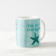 As canecas de café tropicais românticas com brilho roxo olham a estrela do mar que os olhares como ele têm o brilho sparkling all over impressos digital na caneca de café. Igualmente inclui uma mensagem romântica personalizada que diga que você é minha estrela Shinning em um design geométrico nas máscaras da cerceta azuis e verdes que se transformarão seu copo favorito para beber o café ou as bebidas no estilo.