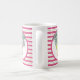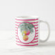 Estas canecas de Natal bonitas apresentam ornamentos de aquarelas e arcos de pinheiro sobre padrões listrados cor-de-rosa e verde. Uma escolha moderna e moderna para as férias de inverno ou para dar como presente de elefante branco de pinkmas para ela. Para ver o tema magenta completo visite www.zazzle.com/dotellabelle Arte com aquarela original e design por Victoria Grigaliunas do Do Tell A Belle