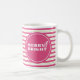 Estas canecas de Natal únicas apresentam listras cor-de-rosa e verdes com as palavras "Feliz e Brilho" em tipografia branca a negrito. Uma escolha moderna e moderna para as férias de inverno ou para dar como presente de elefante branco de pinkmas. Para ver o tema magenta completo visite www.zazzle.com/dotellabelle