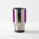Bonito aço inoxidável. Caneca de viagem não derramar com padrão de corações e flores em tons de magenta, roxo rosa e azul.