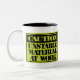 Uma caneca engraçada com um cuidado de oferecimento do sinal sobre materiais instáveis. Projetado para a pessoa que obtem um pouco emocional no trabalho de vez em quando.