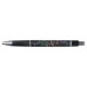 Caneta colorida das notas da música. O ouro metálico e levemente arco-íris coloriu notas musicais em um teste padrão girando contra o preto. Personalize como desejado. #music