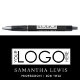Uma caneta de negócios preta e branca ultra moderna com seu nome, profissão e logotipo de negócios. Perfeita para quem ama designs contemporâneos e simples.