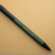 Uma caneta elegante que apresenta uma textura de couro verde escuro com acentos dourados em script. Este design sofisticado oferece uma experiência de escrita luxuosa, tornando-o um acessório ideal para profissionais ou como um presente atencioso.