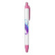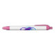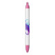 Símbolo infinito com uma bela pena pintada em cores roxas e azuis brilhantes sobre fundo branco.