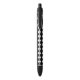 Os pontos pretos nos trimestres próximos criam um padrão secundário de estrelas brancas. Um grande círculo preto é rodeado por linhas brancas, enquanto um solteiro inicial branco agarra o centro.