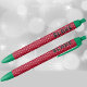 Cute red, green-trim black-ink pen with a Swiss polka dots pattern and subtle black name with thin white outline. Ideal personalized gift to wow family, friends, teacher or boss. Easily change, add to or remove the name to make it yours using the Template provided. Choose ink and trim color. Minimum purchase of 2. See "About This Product" for more information. Made in U.S.A.