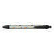 Cães de varejo Ouros bonitos, com casacos escuros e leves, sentam-se e ficam com ossos de cão espalhados e pegadas em um fundo azul.