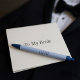 Apresentando um design azul com um fundo de pergaminho, "Groom" escrito em uma fonte azul escura com aparamento azul. O noivo vai adorar usar essas canetas de tinta. Ponha seu pedido hoje!