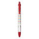 Esta caneta colorida e engraçada apresenta três lápis coloridos com braços, pernas e rostos engraçados, em um chão listrado. No espaço em branco você pode escrever seu nome ou sua própria mensagem.
