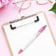 Um fundo branco na moda. Decorado com pingos de brilho rosados falsos, aparência de pingar tinta. Personalize e adicione seu nome. Texto cor-de-rosa.